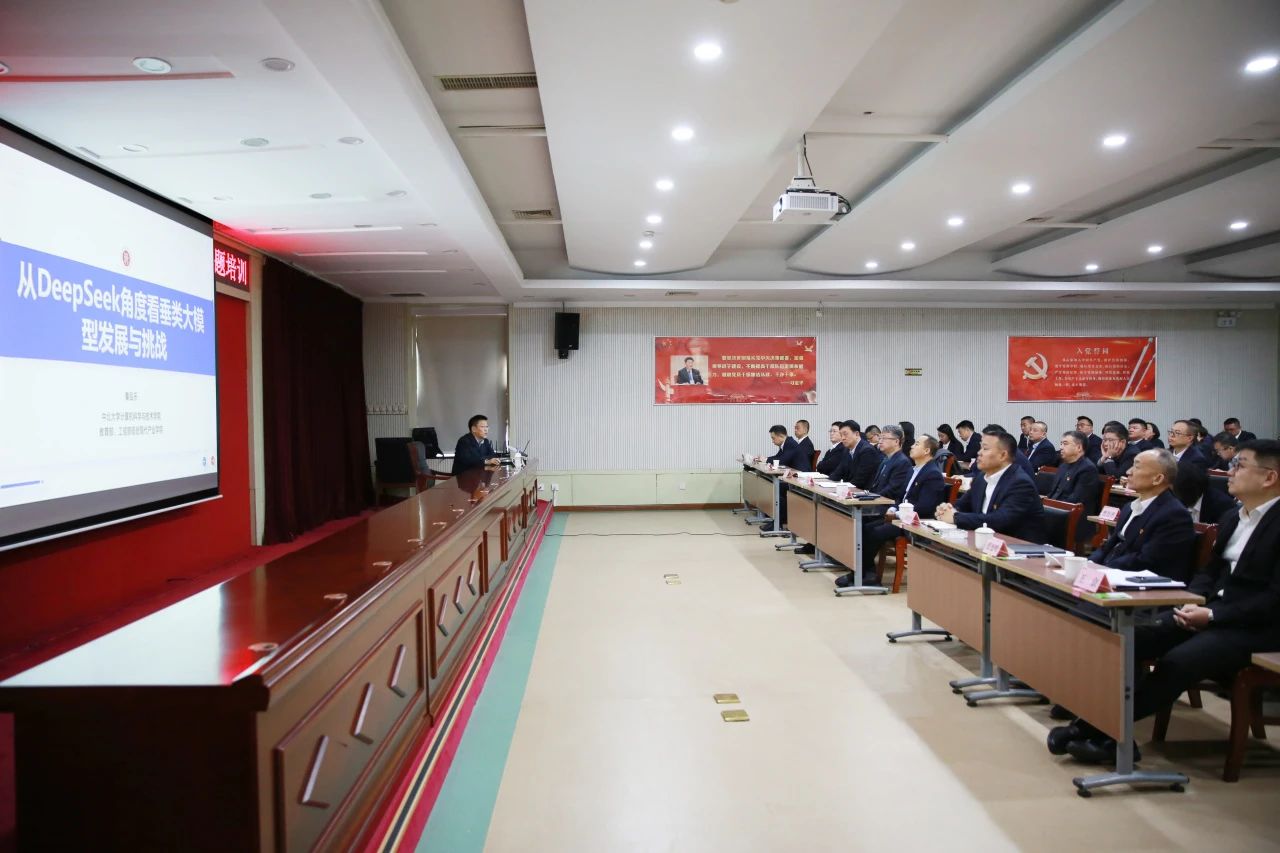 秦教授結(jié)合集團保障特點和業(yè)務板塊,圍繞DeepSeek等大模型技術的發(fā)展階段、發(fā)展趨勢和應用前景,通過“理論+案例+實操”三維教學模式,生動展示了人工智能在公文擬寫、數(shù)據(jù)分析、流程優(yōu)化等場景的融合應用和技術賦能。參培人員對秦教授的精彩授課紛紛點贊。